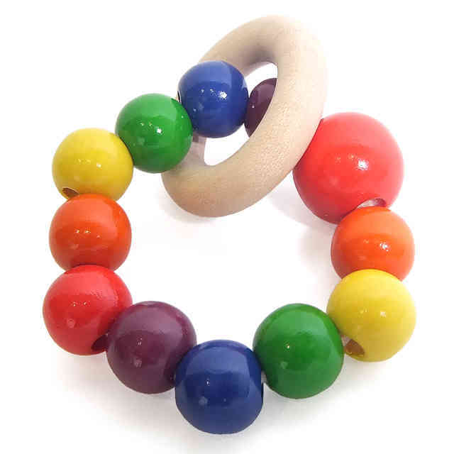 赤ちゃんがなめても安心な木のおもちゃ。ビーズの大きさは生後0~3カ月頃から遊び始められるように考えられて作られています。スタッフのお子さんも生後7日から握れました!歯固めとして、ラトルとしてもおすすめの木のおしゃぶり。出産祝いとしても人気があり、ファーストケーキやダイパーケーキにいれるおもちゃとしてもおすすめです。