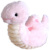 にっこりした口元にキラリとキバを出したピンクヘビちゃん。