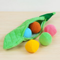 大きなさやえんどうを開けるとえんどう豆が入っている面白い布のおもちゃです。えんどう豆はベビーボールになっていて、ピンクのボールは鈴入りになっています。ピンクのボールはベビーラトルとしても遊んでいただけます。